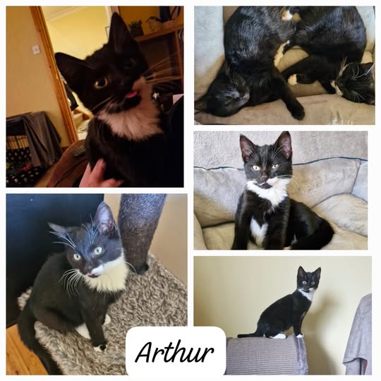 At 12 weeks old, Arthur (formerly Martha π) is a charming black and white kitten with a one of a kind look. This sweet boy is as delightful as his markings.