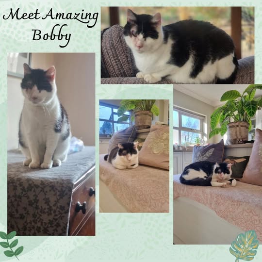 He is approx. 4/5 years old. He has no sight. Bobby is the most adaptable cat I’ve ever been privileged to care for (says his fosterer). He is very easy going with a very placid nature. He maps his space in approx. 7-10days. He has safe spaces in every zone. He moves with ease once confident in his space. Bobby adores affection & will seek you out. He currently has exposure to other cats, and calm dogs. He has adjusted so quickly & loves to sleep in his favourite spot in the centre of the home where he experiences it all with his foster family. He is very easily handled and a gentle soul. A very special home will adore this brave boy❤️. He experiences love through touch, sound and without touching he feels you’re close. A truly magical cat 🐈