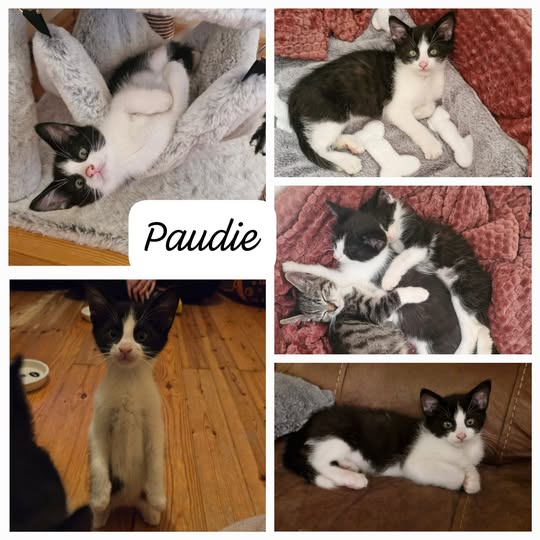 Just like his namesake from The Traitors, Paudie is a fan favourite and a man of the people. This handsome boy is approximately 10 weeks old. He is a charming, curious and confident purrball who absolutely loves his naps sprawled out on the couch beside you. He will certainly recruit you to be his own personal assistant for rubs, treats and attention. He has a gorgeous, soft black and white coat with a distinctive white tip on his tail.